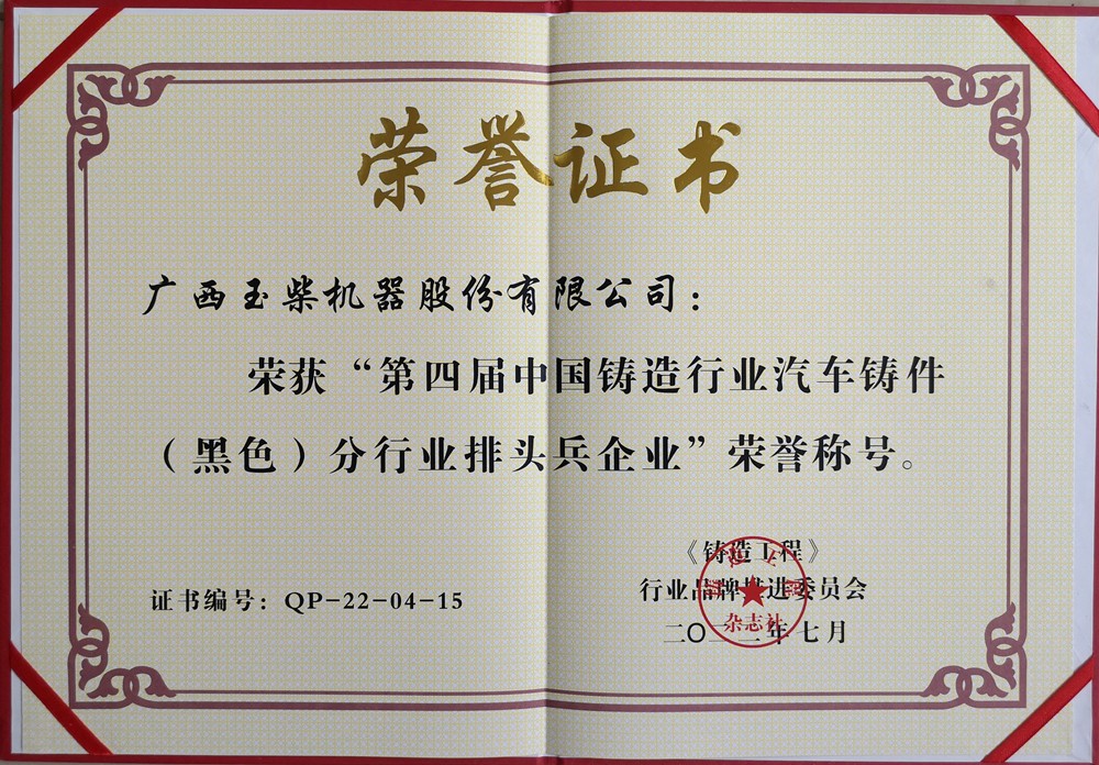第四届中国铸造行业汽车铸件(黑色)分行业排头兵企业