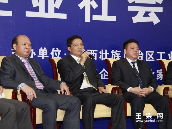 玉柴党委工作部部长梁成振(中)接受媒体采访