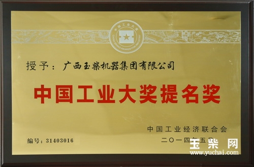 5月17日,我国工业领域最高奖项——第三届中国工业大奖在北京人民大会堂揭晓。玉柴集团喜获“中国工业大奖提名奖”。在此次获得工业大奖的41家企业中,玉柴集团是广西仅有的获奖企业。