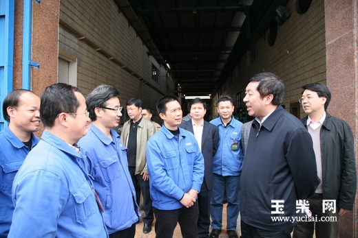 在玉柴考察期间,赵惠令一行听取了相关单位管理人员对生产线生产规模、生产研发设备、工艺流程、研发能力、产品技术等情况的介绍。特别向管理人员了解安全生产工作的情况。