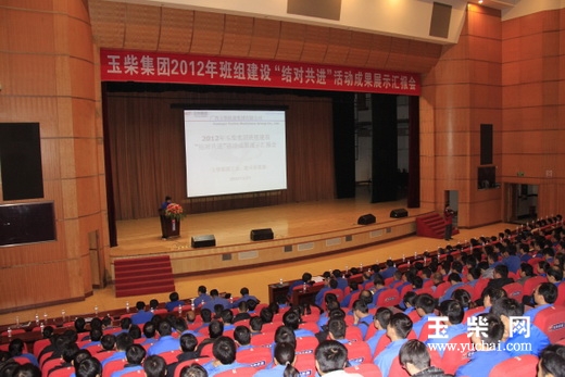 12月29日,玉柴集团公司工会组织召开了集团2012年班组建设“结对共进”活动成果展示汇报会,会上对2012年班组建设“结对共进”活动进行总结,对结对子单位进行了表彰。集团公司总裁古堂生,党委副书记李天生、郭德明等领导出席会议并向结对子单位颁发了奖金。