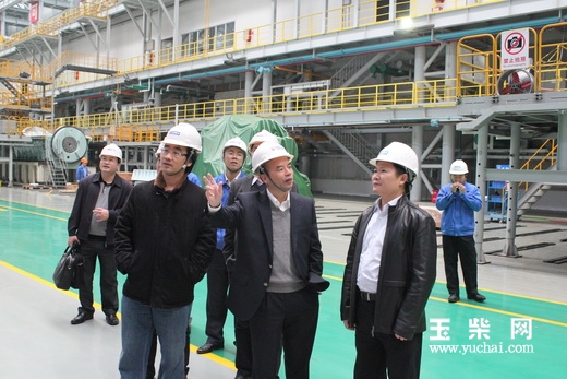 吕玉波(前排右一)、郭德明(前排左一)参观参观玉柴船动车间