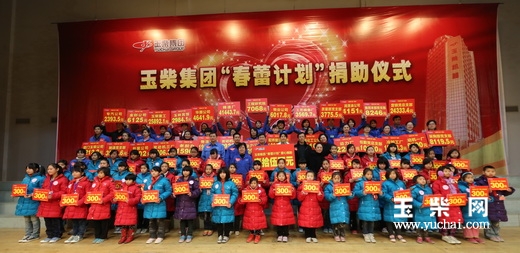 集团公司党委副书记李天生在爱心捐赠仪式上说,责任如山,传递大爱;敢于担当,乐于奉献。玉柴集团一直以来十分重视“春蕾计划”扶持工作,玉柴职工把帮助品学兼优的特困女童继续完成学业作为自己应尽的、义不容辞的责任。玉柴职工为“春蕾女童”的成长奉献了浓浓的爱心,发扬了扶贫济困、助人为乐的民族传统美德。现在,“春蕾计划”已成为玉柴集团干部职工广泛参与的公益活动、向社会奉献爱心的平台,也是玉柴职工贯彻党的十八大精神,构建和谐社会的善举。