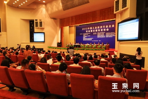 5月26日上午,2012中国工业经济行业企业社会责任报告发布会在人民大会堂举行。会议发布了《2012中国工业经济行业社会责任报告综合评估报告》《中国工业协会社会责任指南实施手册》《中国工业企业社会责任指南实施手册》和《2012社会责任实践案例选编》。玉柴集团、航天科技、国家电网、中国一汽等74家企业在会上发布了年度社会责任报告。