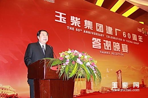 玉林市长韩元利在晚宴上发言。他说玉柴集团建厂60周年不仅是玉柴集团的大喜事,也是玉林人民的大喜事。他代表中共玉林市委、市人大、市政府、市政协向玉柴集团表示热烈祝贺,向玉柴全体职工、离退休职工及其家属表示亲切慰问,向关心和支持玉柴集团和玉林经济社会发展的社会各界表示衷心感谢。