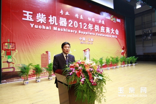 12月17日上午,作为玉柴建厂60周年纪念活动重要会议之一的玉柴机器2012年供应商大会在玉柴文化中心召开。会议以“专业、精益、协同、共赢”为主题,320多家供应商共540多名代表齐聚玉柴,共商合作发展大计。玉柴集团公司董事局主席、玉柴股份公司董事长晏平,玉柴股份公司总经理吴其伟、副总经理陈宁斌,总经理助理、总质量师谭贵荣等领导出席会议。会议由陈宁斌主持。