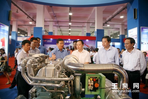 金湘军一行参观了玉柴的内展馆和外展馆,对玉柴展馆大气的外观设计、精心的布置表示赞赏。玉柴股份公司总经理吴其伟、集团公司党委副书记郭德明向金湘军一行介绍了各种展出机型的性能、技术特点以及市场优势,同时介绍了南岳电控、滨州活塞等玉柴配套企业的核心产品。在玉柴外展馆,玉柴重工研发的宽体矿用车YCK360、玉柴动力公司研发的甘蔗联合收割机YC4GZ-100吸引了金湘军一行驻足察看。金湘军对玉柴积极创新,为开拓新市场的努力表示肯定,希望玉柴加大科研力度,开发更多、更符合市场需要的高端产品。