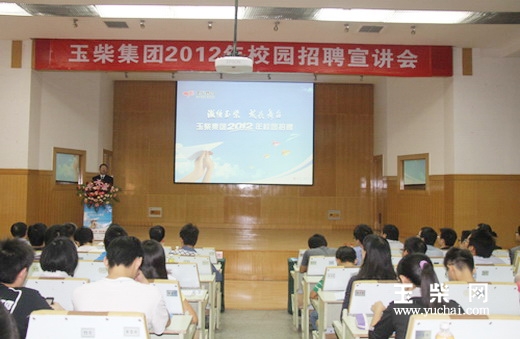 10月11日下午,玉柴集团在华中科技大学1号楼学术报告厅举办了2012年校园招聘宣讲会。玉柴股份公司总经理吴其伟、总经济师王炜,玉林市人社局副局长胡猛、玉林市委人才办主任、科技局副局长蒋祥宋,以及玉柴股份公司副总工程师胡国启、人力资源部经理黄毅、华中科技大学能源与动力工程学院刘会猛主任等出席了宣讲会。