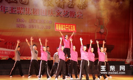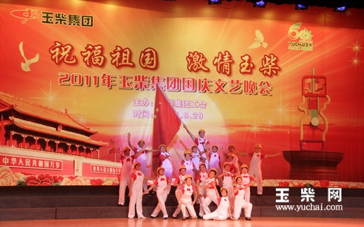主题为“祝福祖国,激情玉柴”的2011年玉柴集团国庆文艺晚会于9月29号晚在文化中心精彩上演。玉柴集团公司董事局副主席、党委副书记李天生,党委副书记郭德明,集团公司工会主席梁萍观看了晚会。
