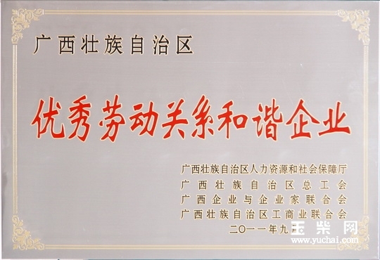 其中玉林市有玉柴机器股份有限公司、银亿科技矿冶有限公司、玉林制药有限责任公司等3家企业获“优秀劳动关系和谐企业”称号,玉柴重工有限公司、南山瓷器有限公司等2家企业获“劳动关系和谐企业”称号。