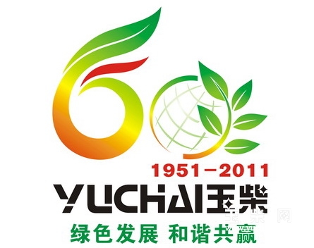 玉柴60周年庆标由数字60、1951-2011、YUCHAI玉柴、核心理念“绿色发展,和谐共赢”四部分组成。庆标设计以企业标志“YC ”、建厂60周年和生态叶子为主要设计元素,“Y”经艺术变形后构成数字“6”,“C”与环绕的绿叶构成圆融共生的“0”,寓意玉柴经历60年风雨历程后,更加坚定走绿色民族工业之路,打造国际知名品牌的坚定信心。