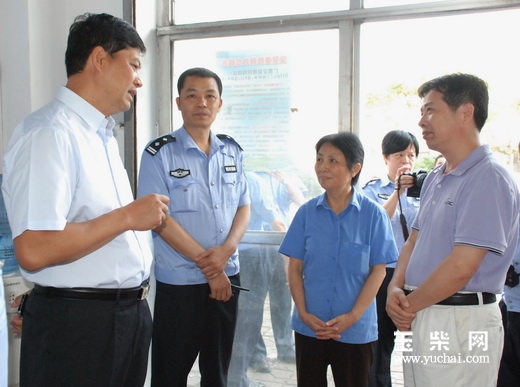 许建忠(左一)在邻里交警玉柴服务站考察