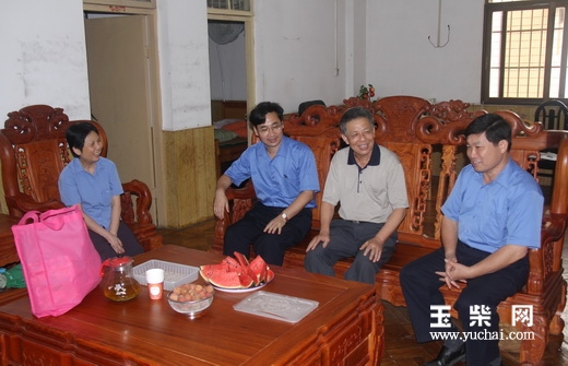 6月29日,玉柴集团党委副书记李天生、张嘉莎、郭德明,工会主席梁萍、女工主任郭诗娟等一行到晏永霖、庞献鼎、覃茂威等离退休党员干部家中慰问,向他们送上了“七一”节日的问候和慰问品、慰问金。