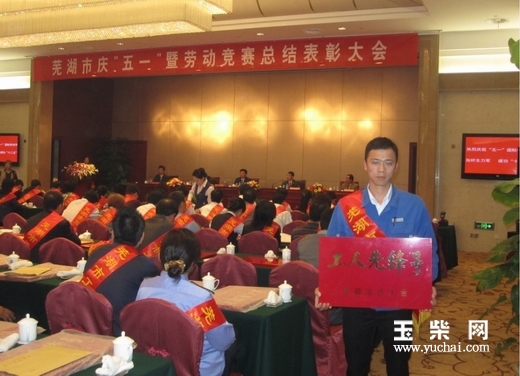 4月28日,在芜湖市庆“五一”暨劳动竞赛总结表彰大会上,玉柴联合动力试机班组被市总工会授予芜湖市“工人先锋号”称号。