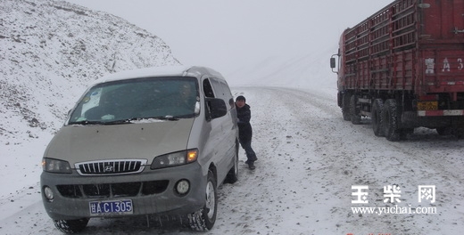 但木里煤矿环境异常恶劣,常年高寒缺氧,一天就出现狂风、暴雪的四季天气。 由于环境恶劣,YC6M发动机也出现“水土不服”——水温低。为了迅速消除故障,3月16日,玉柴客户服务中心杨第强、技术支持部吴运禧、应用开发部莫曲3位专家专程前来处理故障。一到青海,三人顾不上一路上的辛苦,就直奔经销商处了解具体情况。