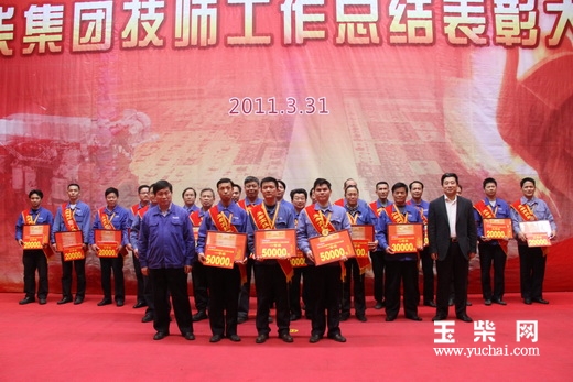 3月31日下午,玉柴集团技师工作总结表彰大会在文化中心隆重召开。会上,玉柴又一次以百万元重奖高技能人才。玉柴集团公司董事局主席晏平等公司领导为获奖人员颁奖。