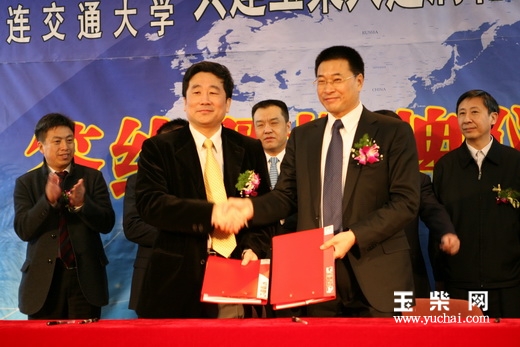 玉柴机器股份公司总经理助理林志强,玉柴配件公司董事长韦明发,玉柴材料工艺研究所高级专家于笋,大连市市长助理、经济与信息化委员会主任刘岩,旅顺口区区长惠凯,大连市科技局副局长姜斯进,东风朝阳柴油机有限公司总经理赵庄,大连机车车辆有限公司总经理闵兴,大连重工起重集团副总经理田长军,大连交通大学党委副书记刘玺明,副校长陈国恒、任瑞铭、马云东,纪委书记唐立出席签约仪式。