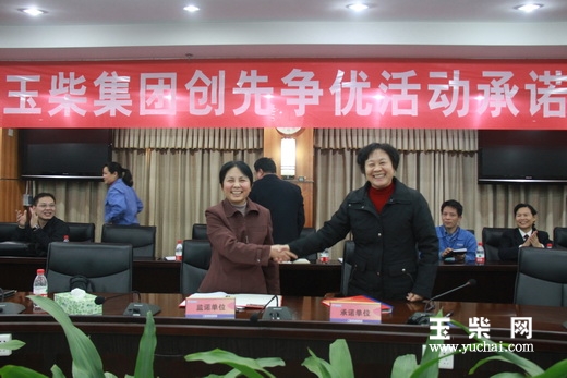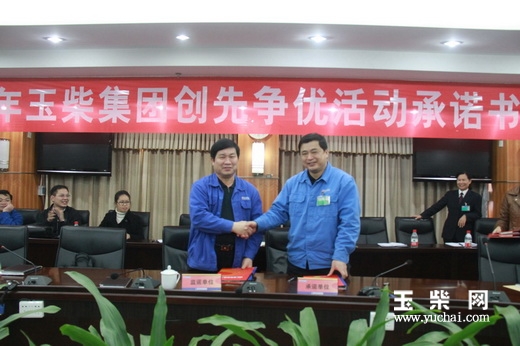 为贯彻落实好玉林市《关于在创先争优活动中开展“先锋承诺大行动”活动的实施意见》的精神,深入推进“创先争优”活动,3月3日,玉柴集团举行2011年创先争优活动承诺书签订仪式,玉柴集团公司党委副书记张嘉莎代表集团公司党委,玉柴机器股份有限公司党委书记李天生代表股份公司党委,分别和12个党委、党(总)支部代表签订了承诺书。