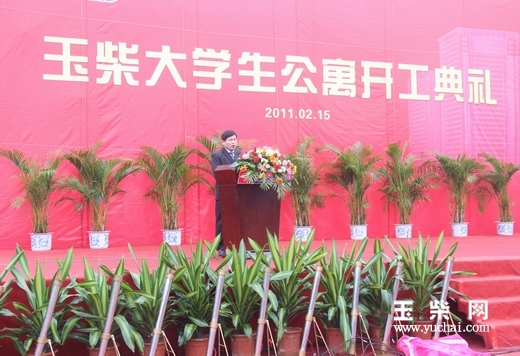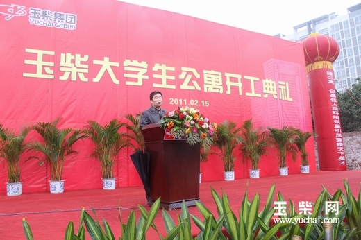 2月15日上午, 玉柴员工盼望已久的大学生公寓正式开工建设。玉柴集团公司董事局主席晏平、副主席李天生、总裁古堂生、党委副书记张嘉莎等公司领导,集团公司本部全体职员、股份公司各部门领导、新进玉柴的大学生员工代表以及施工单位代表等出席了开工典礼。