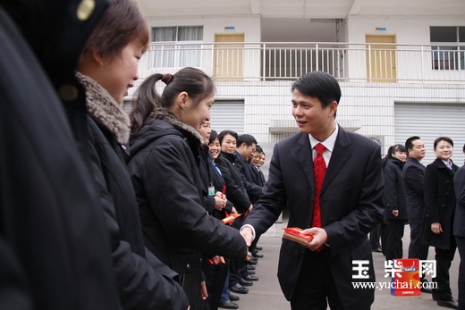 “请晏主席放心,请玉柴放心,我们做玉柴的忠诚卫士。”这是公司领导慰问玉柴保安时,保安们表的决心。1月31日,玉柴集团公司董事局主席晏平、副主席李天生、总裁古堂生、副总裁谢裕强等领导亲切慰问玉柴保安、集团办公室的员工,为他们送上新春的问候和祝福。