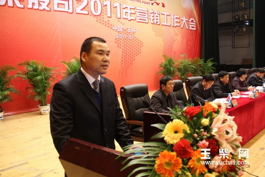 1月28日下午,股份公司在玉柴文化中心召开了2011年营销工作大会。股份公司总经理李天生,党委书记梁萍,常务副总经理吴其伟,总会计师覃小红,董事长助理晏杰,工会主席饶英贤等公司领导,销售公司、海外营销部、专卖公司的全体员工以及驻外会计参加了会议。