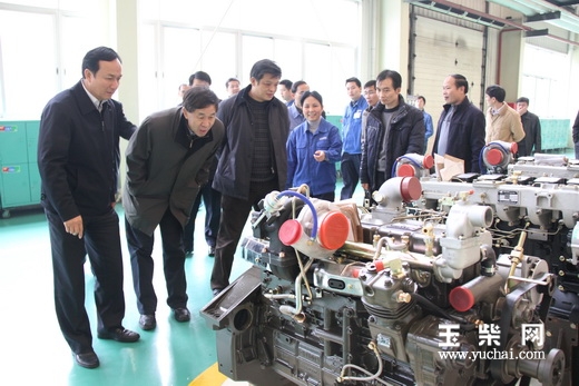 吕春波一行仔细查看玉柴发动机产品
