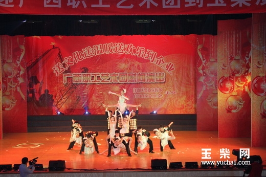 1月16日晚上,广西职工艺术团到玉柴慰问演出,送文化送温暖送欢乐到企业。自治区总工会宣传部主任王尽亭,玉林市总工会副主席匡昭梅、调研员阮贵光,玉柴集团工会主席饶英贤等领导出席了晚会。