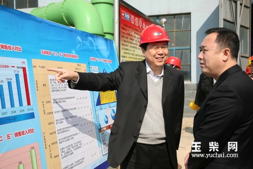 金湘军(右)、韩元利(左)等市领导了解玉柴发展情况