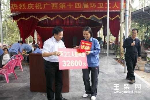 10月26日下午,玉林市龟山公园一片欢声笑语,玉柴163名环卫工人在这里欢度自己的节日。玉柴集团公司副总裁谢裕强,工会主席饶英贤,董事局主席助理、物业公司董事长李呈杰等领导送来了节日的慰问金和美好的祝福。