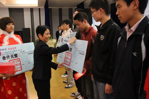 获得玉柴奖学金的学生代表王昊感动地说:“我是一名本硕博连读生,学习成绩虽然很好,但家庭经济困难让我的学习和生活受到很大的干扰。从第一次拿到学校的一等奖学金到今天荣获玉柴奖学金,我得到了学校和玉柴的大力帮助,使自己能安心地完成学业。我将努力学习,毕业后争取加盟玉柴,回报玉柴和社会。”张嘉莎为获得玉柴奖学金的26名学生颁发奖金和荣誉证书。