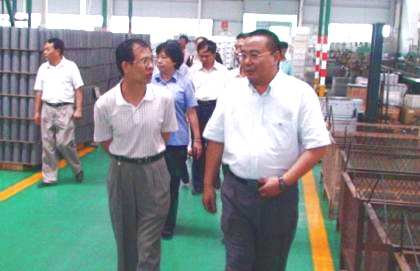 为了满足股份公司发动机配套的需求,2001年7月,玉柴集团和香港华盛机械有限公司合资成立了玉柴华盛机械(玉林)有限公司。此时,执掌华原的领路人还没有意识到自己将开创怎样激动人心的局面,所以,2001年投资才700万港币,而这远远不能满足厂房、设备等基础建设的要求。同时,由于华盛机械(香港)有限公司生产的滤清器以维修备件销售为主,缺乏与发动机配套的经验,玉柴、华盛机械(香港)有限公司两个股东商议后决定引入一个有经验的企业。这时,早已是玉柴供应商的平原滤清器有限公司进入了两家股东的视野。平原滤清器有限公司是一家军工企业,是航空工业总公司下属集团公司航空116厂 张文(右)向来访客人介绍华原公司情况