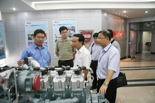吴其伟(左)、钟玉伟(右)陪同吴文文(左三)参观玉柴产品