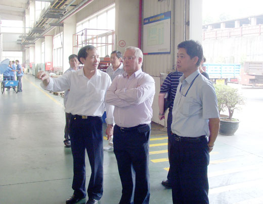 Tony.Roskilly教授(中)参观玉柴生产车间