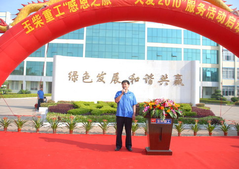 7月15日,玉柴重工总部彩旗飘扬、气球飞舞,玉柴重工在这里隆重举行了“感恩之旅—关爱2010”服务活动的启动仪式。玉柴重工总经理张士勇、党委副书记詹旭、副总经理边德军、各部门领导以及供应商代表出席了仪式。仪式由玉柴重工营销公司副总经理叶国球主持。
