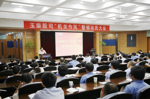 “玉柴的快速发展,需要一支高素质、作风过硬、执行力强的管理团队,我们的这个团队应该是行业最优秀的!”7月14日上午, 在玉柴机器股份有限公司(以下简称“股份公司”)“机关作风”整顿动员大会上,董事长晏平发表了富有激情的动员讲话。