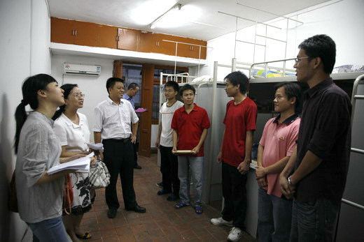 7月8日晚,玉柴英华小区专家楼和各个生活小区大学生楼的新员工宿舍里,不时响起一阵阵欢声笑语。原来是玉柴的公司领导们惦记着新员工们的生活、住宿情况,连夜到各宿舍区慰问新员工。