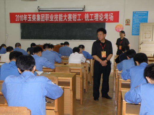 近期,2010年玉柴集团职业技能大赛职业工种钳工、铣工、数控车工大赛正式开擂,104名选手参加了理论知识考试,集团工会主席饶英贤、培训中心主任万声兰亲临现场检查和指导。