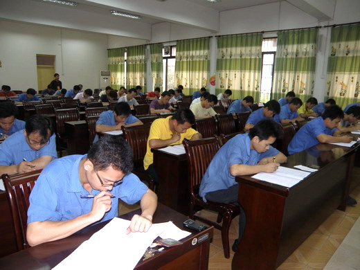 理论考试现场 本次比赛呈现两大特色,一是参赛选手大幅增加,股份公司、玉柴重工、金创公司等单位派出了强大的参赛队伍;二是选手主动放弃外出旅游的机会来参加比赛,参赛积极性高。 举办集团职业技能大赛是职工提升技能的有效形式,赢得广大职工的青睐。