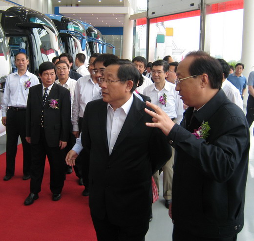6月11日,重庆首批50辆新能源客车交付使用仪式在重庆恒通工业园隆重举行。全国政协副主席、科技部部长万钢,重庆市人民政府副市长童小平,科技部副部长张来武、副秘书长王志学等领导共同为首批新能源客车下线剪彩,玉柴股份公司总经理李天生、董事长高级技术顾问卓斌教授应邀出席交车仪式。