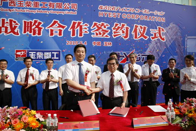 为强化供应链建设,与核心供应商建立战略合作关系,6月4日上午,玉柴重工与日本HYEST有限公司(以下简称“HYEST公司”)在玉柴重工总部举行战略合作签约仪式,玉柴集团公司董事局主席、玉柴重工董事长晏平与HYEST公司社长生田正树分别在战略合作协议书上签字。这标志着玉柴重工与HYEST公司的合作迈上了新的台阶。