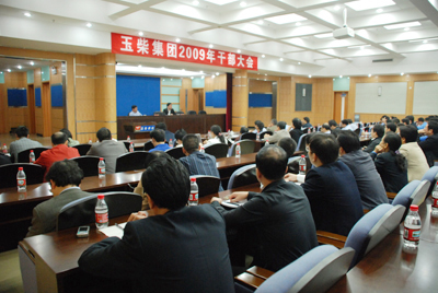12月12日上午,玉柴集团在动力大厦三楼会议室召开2009年干部大会,玉柴集团董事局主席晏平作重要讲话,副主席李天生主持会议,集团90多名中层正职以上管理干部参加大会。一年之计在于春,大会为年底以及新一年的工作指明了方向,明确了要求。