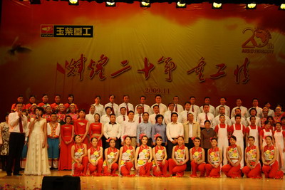 整台晚会节目精彩而主题突出,共分为创业、奋进、腾飞三个篇章,每个篇章以纪录片开头,回顾了玉柴重工20年三个不同历史时期的重要发展历程。公司工会、团委的舞蹈《拼搏》,展现了重工人坚忍不拔、坚持不懈的创业精神;《总成雄风》、《铁军风采》展现了生产一线工人的铁军形象;27位与重工一路走来的老员工,真情演绎的配乐诗朗诵《玉柴重工人》,感染了在场的每一位观众。他们作为公司第一代建设者的代表,20年如一日,默默耕耘,他们当中有老干部,科技人员,劳模,“三八红旗手”及工人技师,他们在不同岗位为重工的发展作出了突出贡献,重工常务副董事长张士勇为他们颁发了公司20周年纪念银章,感谢他们为公司做出的贡献。