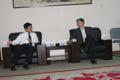 李天生(左)与李培根洽谈校企合作事宜