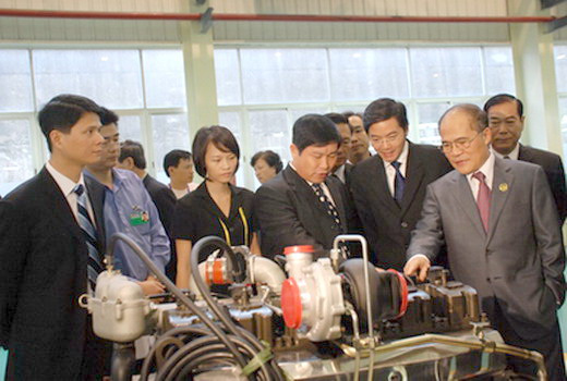 10月21日下午,在广西区政协副主席李达球、玉林市委副书记刘子福等领导的陪同下,越南国家常务副总理阮生雄率领越南政府代表团到玉柴参观考察。这是阮生雄出席玉博会开幕式之前到玉柴进行的一次考察活动。玉柴集团公司董事局副主席李天生、总裁古堂生、股份公司党委书记梁萍、副总经理宁兴勇等领导率队热烈欢迎阮生雄一行。