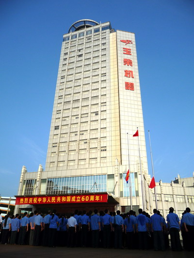 10月1日,新中国迎来了60周岁诞辰。经过一夜的秋雨,今天的玉柴动力广场在初升太阳的映衬下显得更加清新亮丽,人们的脸上都洋溢着喜悦的笑容。7时15分,玉柴集团升国旗仪式在这里隆重举行。玉柴公司领导、7位自治区级、全国级劳模与200多名职工代表一道参加升国旗仪式,共庆中华人民共和国60岁的生日,共祝祖国明天更加繁荣富强,和谐美好。