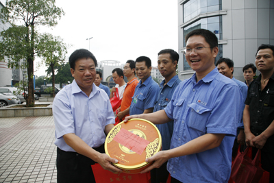 月饼虽小,它传递的却是晏平对工人技师的真情关爱。9月16日下午,在中华民族传统的中秋佳节来临之际,玉柴技师协会600多名会员收到了董事局主席晏平送上的月饼。在文化中心前,集团公司工会主席饶英贤受晏平委托,将寄托着关爱与期望的月饼派发到技师们的手中,祝愿大家节日快乐,生活美满。
