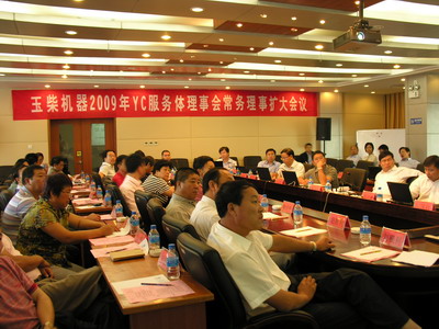 2009年9月4-7日2009年服务经理中期汇报会暨YC服务体理事会常务理事扩大会议在云南省丽江市召开。股份公司总经理李天生、副总经理吴其伟、梁清延、总质量师谭贵荣、产品总规划师钟玉伟、销售公司总经理高强、销售专卖党支部书陈启贤,以及玉柴技术、质量、财务、销售、专卖、高润、华原等公司、部门的相关领导,YC服务体理事会成员,共计90多人参加了此次会议。