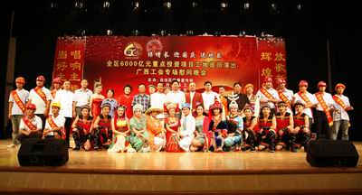 这台主题为“保增长、迎国庆、送欢乐”的文艺晚会是自治区党委宣传部、总工会、文化厅、自治区6000办公室共同主办的一项迎国庆爱国主义教育活动,也是自治区总工会今年开展的“辉煌60年 放歌新中国”广西职工文化活动年的一项重要内容,旨在激发广大职工的爱国主义热情,充分发挥工人阶级主力军的作用,确保全区6000亿元项目的顺利完成。