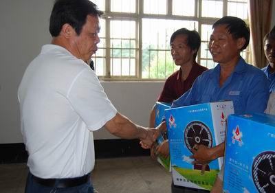 张福文亲手把电风扇一一送到员工代表手中。这些员工代表是生产一线选拔出来的优秀工人,他们为了保证公司的产值,不畏酷暑和严寒,认真负责地坚守在工作岗位上。在采访员工代表时,他们表示了对市总工会送清凉活动的感激,并将会在以后的工作中更加努力,加强学习,提高生产技术和效率,为金创公司,为玉柴集团再创辉煌。