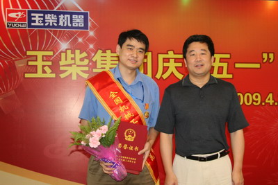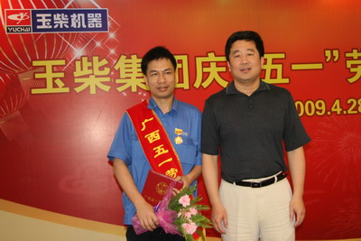 晏平为近日获得全国“五一”劳动奖章获得者、全国机械工业劳模林铁坚、广西“五一”劳动奖章获得者苏伟颁奖并做重要讲话。晏平说,当前,金融危机、就业、民生是老百姓最关注的问题,我们玉柴有能力解决这些问题,这得益于玉柴良好的基础,而这个基础则来自于我们公司各条战线上的先进人物在各自岗位上做出的突出贡献,得益于广大干部员工的奋力拼搏;面对金融危机,公司仍然获得了健康发展,生产经营情况非常良好,3月份,股份公司的订单达到7.5万多台,4月份订单也将近7万台,预计5月份的订单会达到4.5万台,3月、4月份的销售都超过了6万台。晏平代表公司向各位先进人物表示感谢,并祝福他们节日愉快、生活幸福。晏平希望各位先进人物在各自的岗位上一如既往地努力工作,发挥先锋模范作用,相信玉柴在各位先进人物以及全体员工的努力下,一定能够从容地应对金融危机。